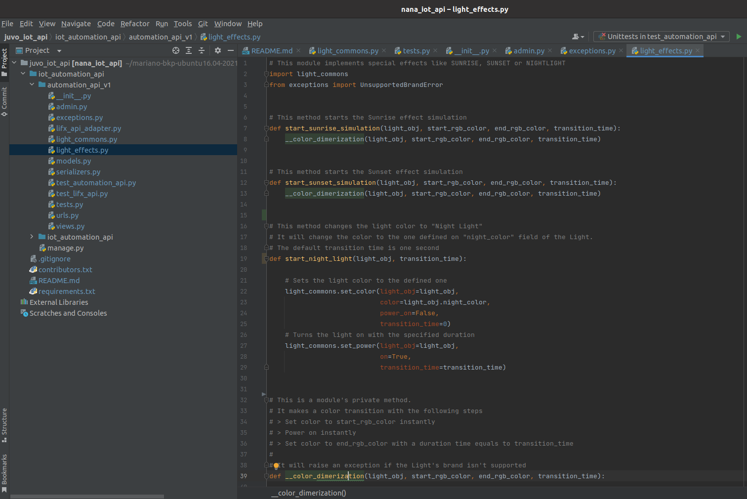 - Integration with smart lights consuming REST APIs